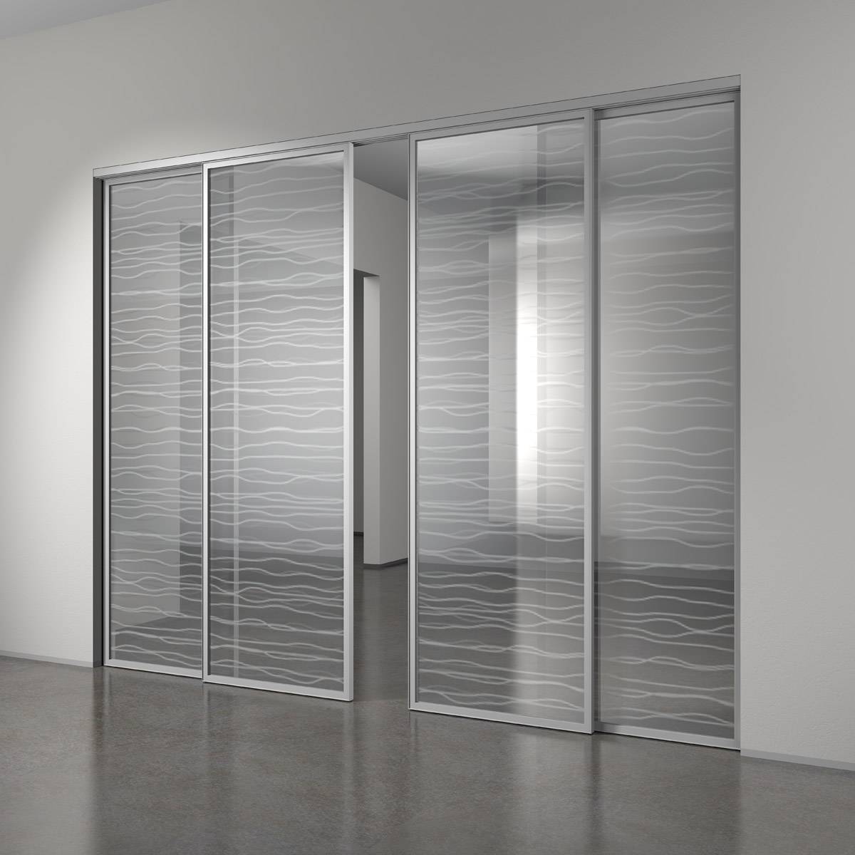 Обычно состоят из одного или нескольких полотен. Удобство конструкции заключается в том, что двери при открытии идут по направляющим и не требуют дополнительного пространства в помещении. Раздвижные системы могут быть самой различной конфигурации: