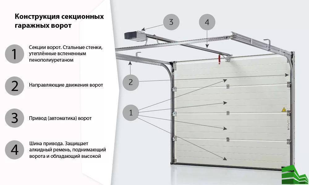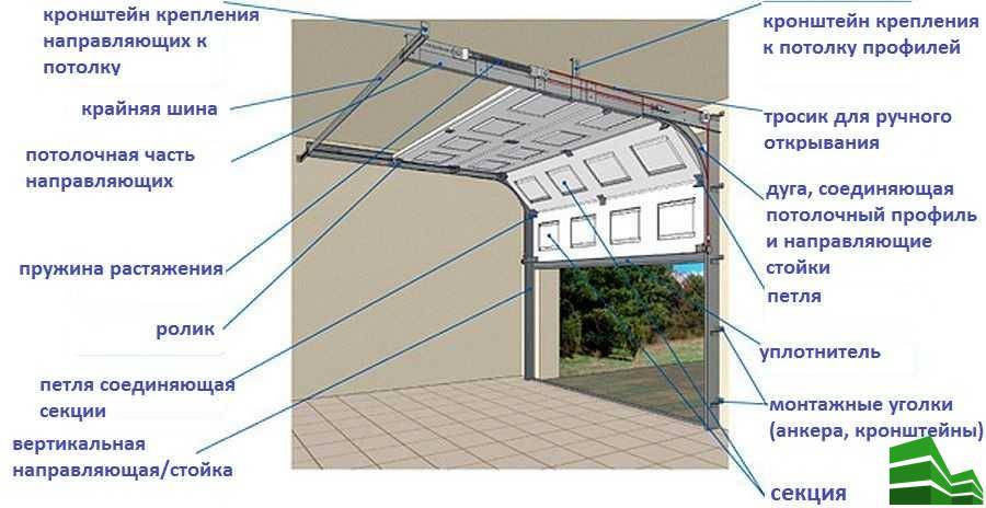 Секционные ворота состоят из нескольких элементов: