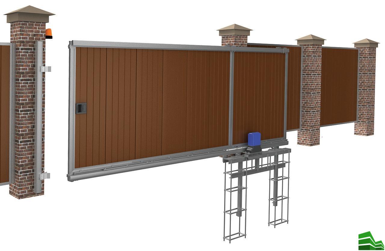 Системы откатных ворот в основном устанавливаются на коммерческих объектах, однако такой вариант подходит и для дачного участка. Как правило, для установки этого типа нужно пространство в изгороди шириной около 25 метров, но в отдельных случаях они могут быть установлены в небольшом пространстве. Часто использование именно откатных ворот – это выход из таких ситуаций, когда невозможно установить распашные (например, из-за крутого наклона ландшафта).