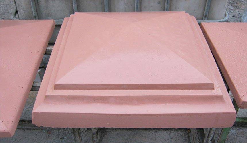 Если говорить о цветовом решении, то чаще всего бетонные колпаки для столбов забора исполняют в сером оттенке. Благодаря использованию в процессе производства такой метод, как вибролитье, стало возможным добавлять различные пигменты в состав и придавать итоговому изделию необходимый окрас. Такой вид окрашивания обладает следующими неоспоримыми достоинствами: