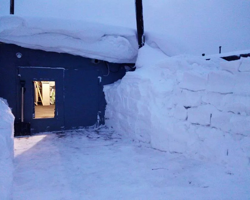 Огромная снеговая нагрузка на крышу гаража Источник pikabu.ru