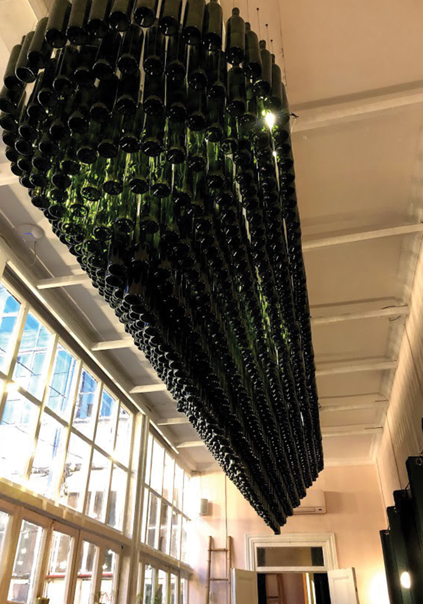 Продвинутые в дизайне могут сделать из винных бутылок плафоны и люстры.