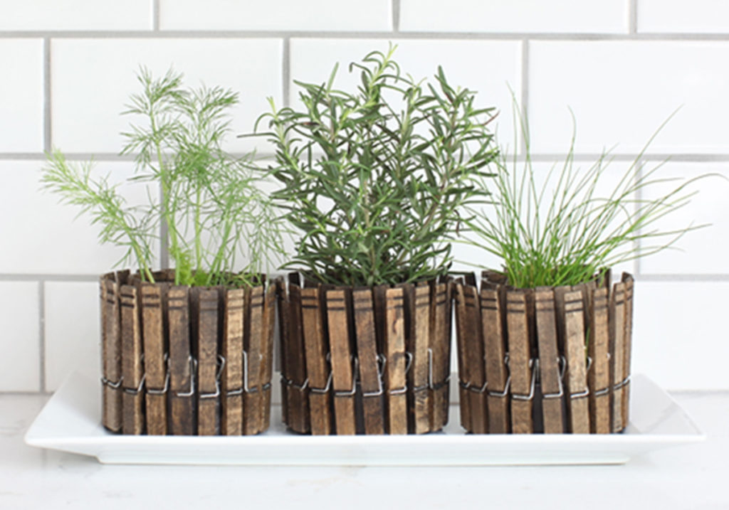 Это самое простое в нашем списке: прикрепите прищепки на невысокую жестяную (консервную) банку, и всё! В таких емкостях не получится вырастить многолетнее растение, а вот зелень для салата — кориандр, базилик, редис, дайкон, кресс-салат, петрушку, кинзу, укроп — легко. Если очень хочется творческих решений, раскрасьте прищепки акрилом.