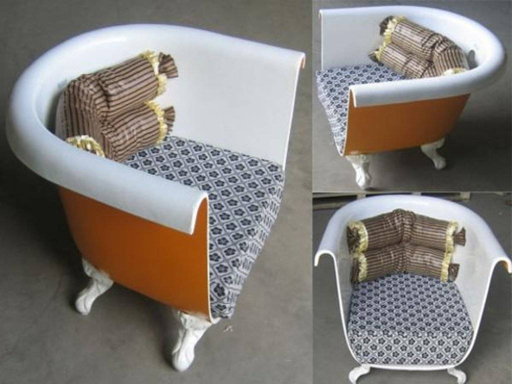 Рисунок 4. Диван из старой ванны можно покрасить водостойкой акриловой краской и украсить текстильными подушками.