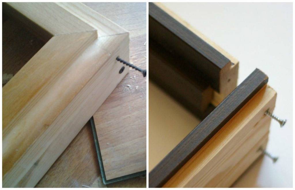 - Элементы укладываются на каркас и закрепляются штапиками (тонкими декоративными рейками) сверху. Конструкция аналогична установке стекол в обычных деревянных рамах.
