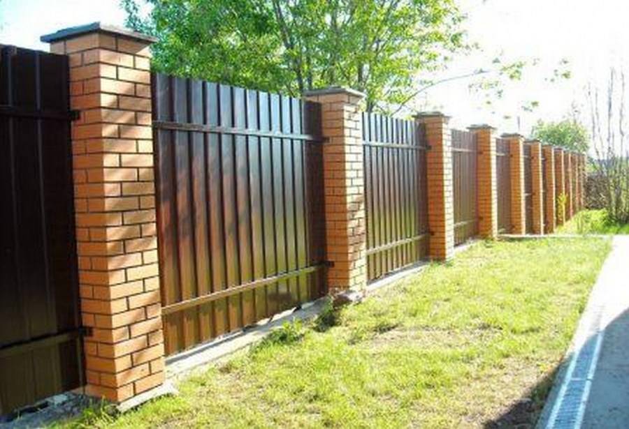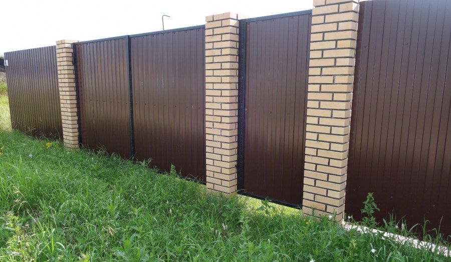 Один из самых консервативных цветов профнастила. Коричневый цвет меньше всех выделяется, при этом он не выглядит плохо или мрачно. Такой выбор делают те владельцы домов, которым приходится мириться с постоянной пылью от песчаных дорог или с грязью от них в дождливую погоду. На коричневом заборе меньше всего будет заметны данные казусы.