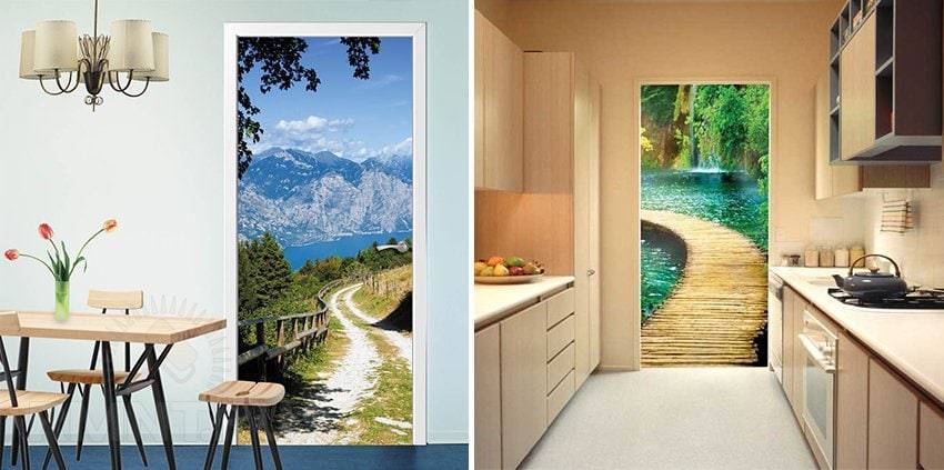 Декор межкомнатной двери, выполненный таким методом, очень популярный, большим плюсом его является создание всевозможных рисунков. Перед выполнением декора поверхность полотна следует хорошо подготовить по тому же принципу, что и под отделку обоями. Межкомнатную дверь следует довести практически до идеала, если необходимо заменить штапики, которые держат стекло.