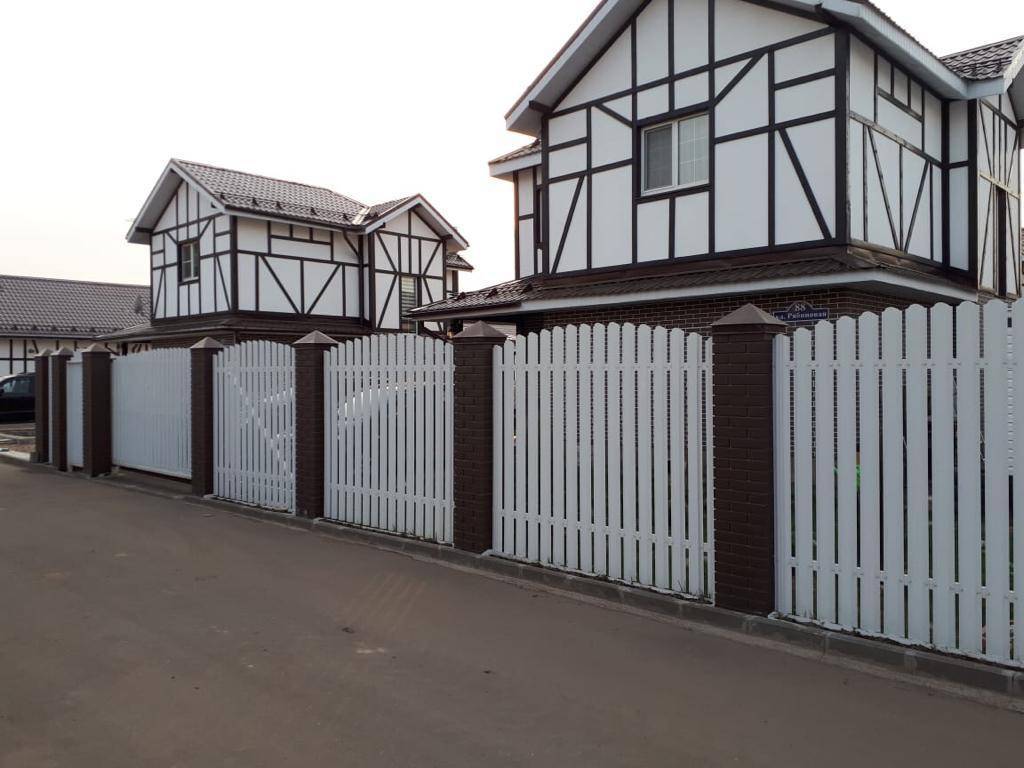 Коричневые ПИКС на белом заборе из штакетника