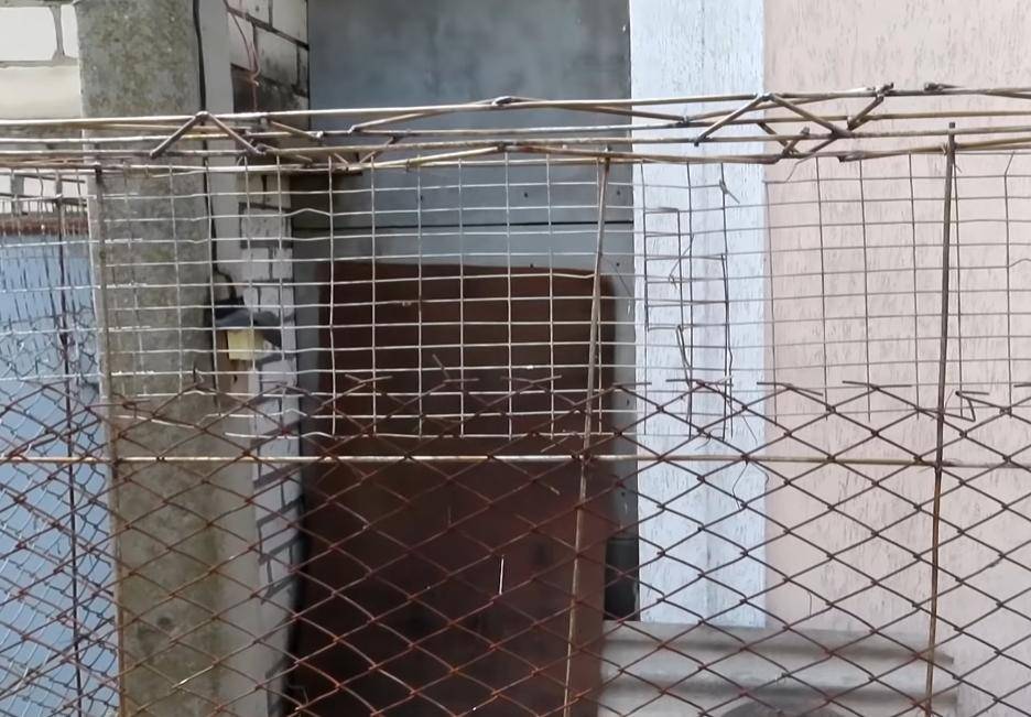 К выступающим из основания металлическим прутьям крепим армирующий каркас самого ограждения.