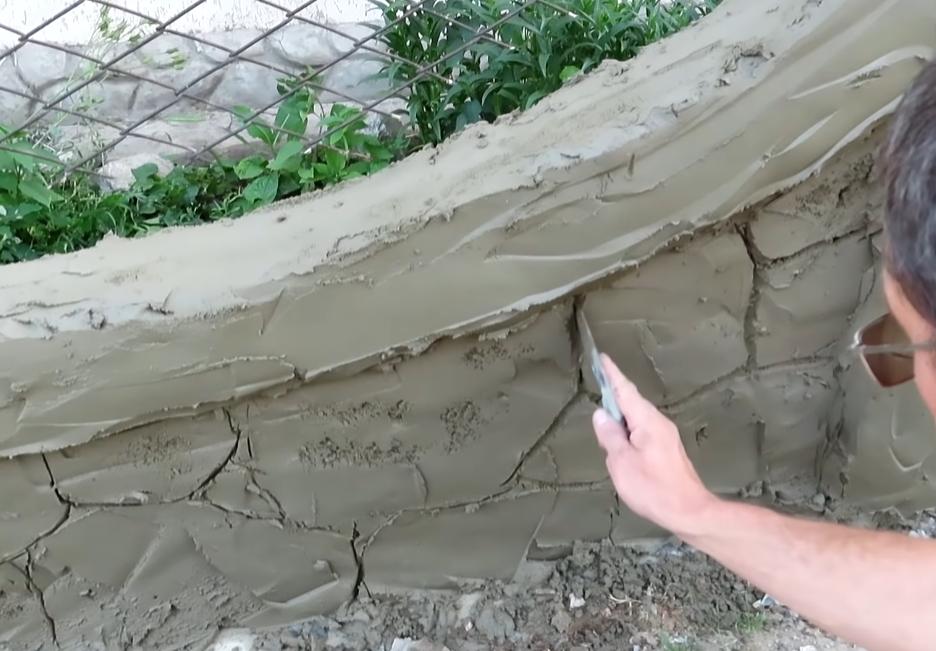 - на поверхность сетки наносят слои арт-бетона. Для этого используют обычные инструменты — мастерок, кельма и т. п.;