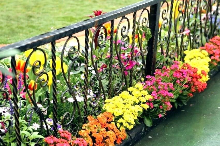 Заграждение из металла позволяет создавать стильные композиции на участке