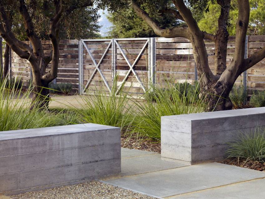 Изгородь из бетона проста в исполнении и часто используется на участках с современным дизайном