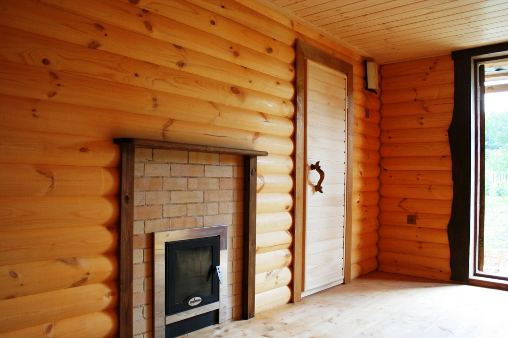 Процесс установки блока в бревенчатом строении имеет некоторые особенности. Первоначальная усадка сруба происходит в течение первого года. В последующем сруб также будет немного «гулять». Вследствие этого установка блока в бревенчатом строении происходит с помощью обсадной коробки. Она обрамляет проем и не позволяет нагрузкам с «гуляющих» бревен передаваться на короб и створку, и менять их форму.