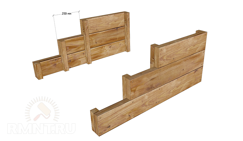 Если детали нарезаны правильно, то нижние каскады под ступени должны получиться шириной по 250 мм.