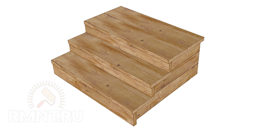 Монтаж ступеней следует начинать с двух противоположно крайних сторон крыльца, первыми крепятся верхняя задняя ступень и нижняя передняя подступень, с обеих сторон каркаса должны оставаться отступы по 40 мм.