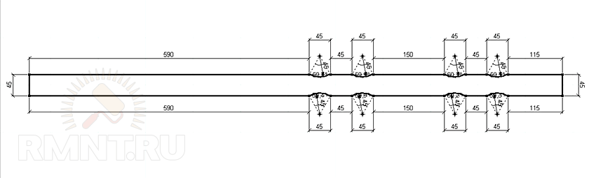 Балясины изготавливаются из брусков сечением 45х45 мм, потребуются бруски следующих размеров: