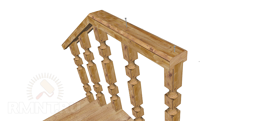 - Укладывается сам поручень и фиксируется саморезами или шкантами;