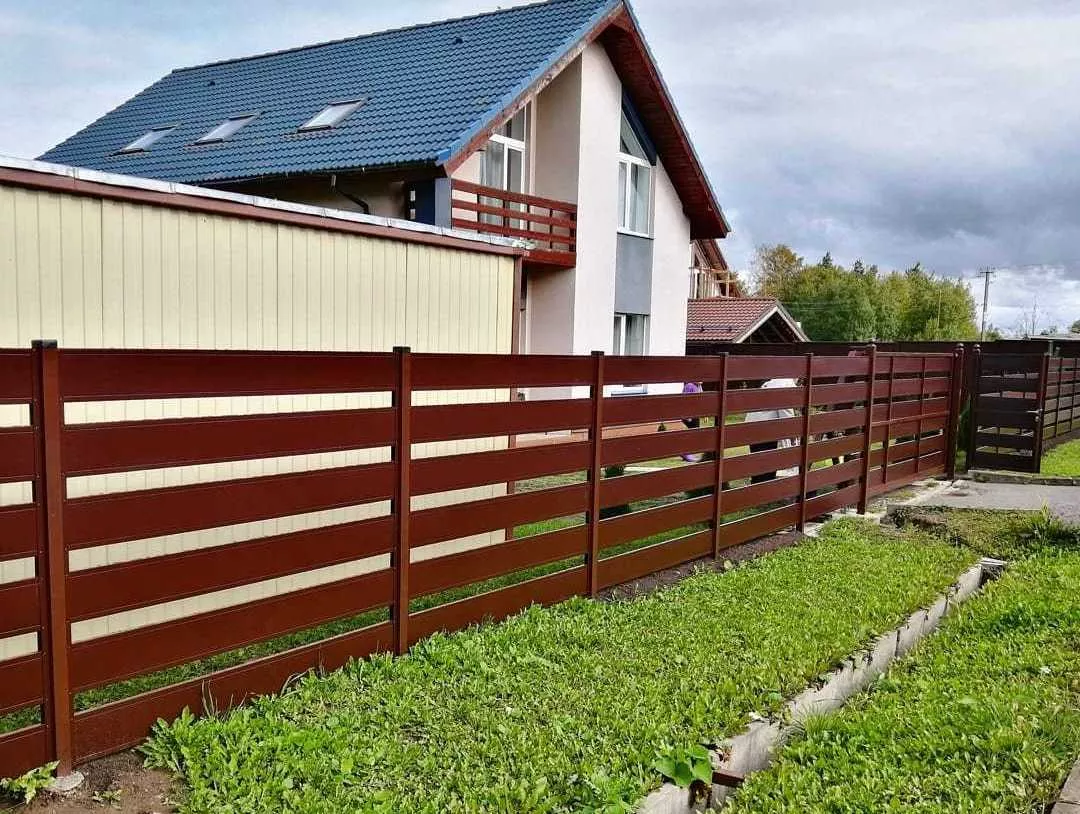 - металлический штакетник: окрашенный в разные цвета, издали мало отличим от деревянного, однако срок его службы выше