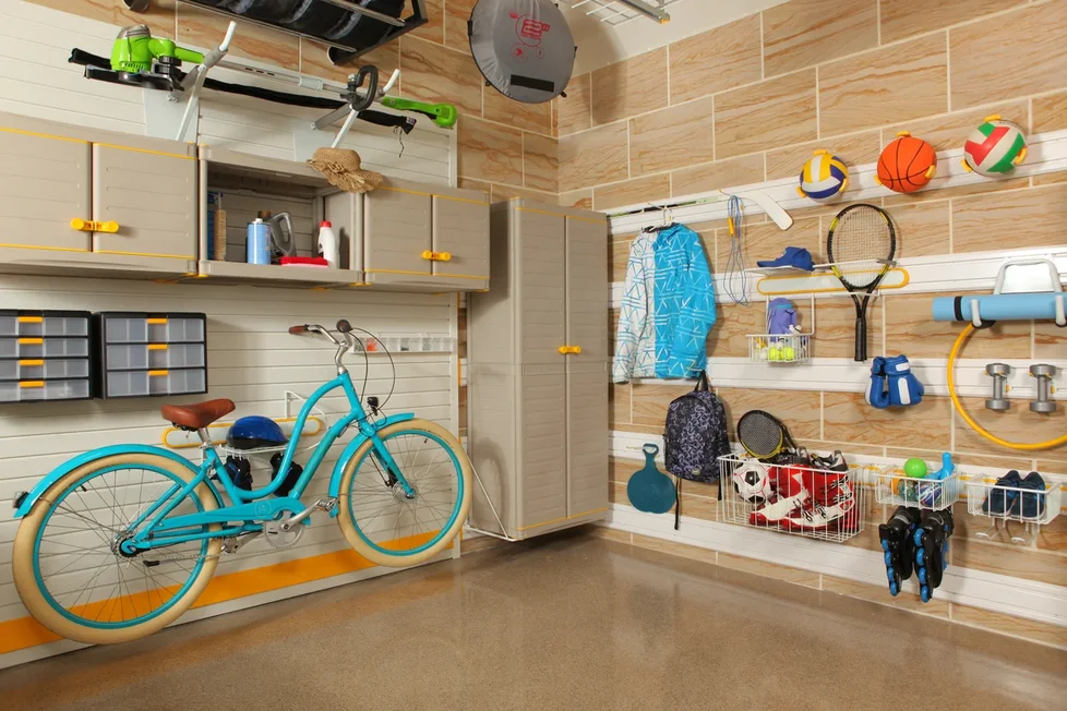 организуйте в гараже удобную и практичную зону хранения спортинвентаря или других вещей для хобби.