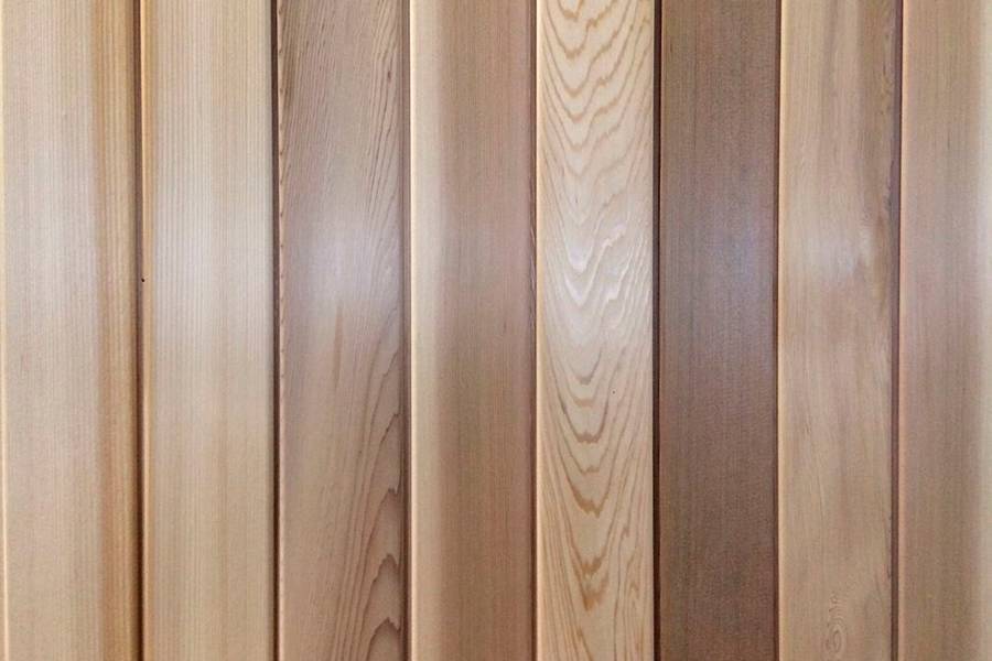 Отличный вариант для отделки парной. Но обработка ее происходит с трудом, структура легко раскалывается. Зато в ней содержится камедь, благодаря которой вагонка максимально устойчива к влажности и отличается высокими параметрами теплоизоляции помещения.