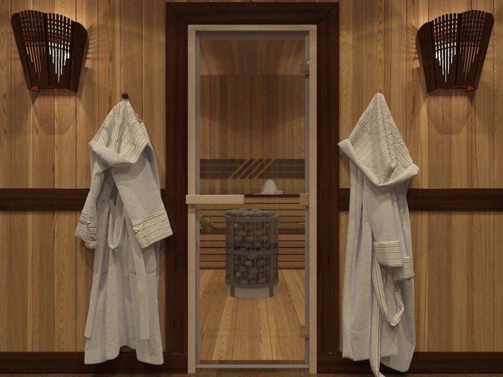 Лучшие двери для сауны, установленной внутри дома или квартиры, — стеклянные. Они отвечают санитарным условиям и требованиям безопасности, а также хорошо вписываются в разные стилевые решения. Закаленное стекло, которое применяют для изготовления дверных полотен, прочное, хорошо сохраняет тепло, не деформируется, а значит, такая дверь в сауну не нуждается в регулировке.