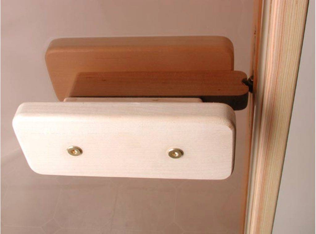 - Фурнитура должна обладать низкой теплопроводностью, не слишком сильно нагреваться. По этому параметру древесине нет равных. Она не будет обжигать руки даже в финской сауне.