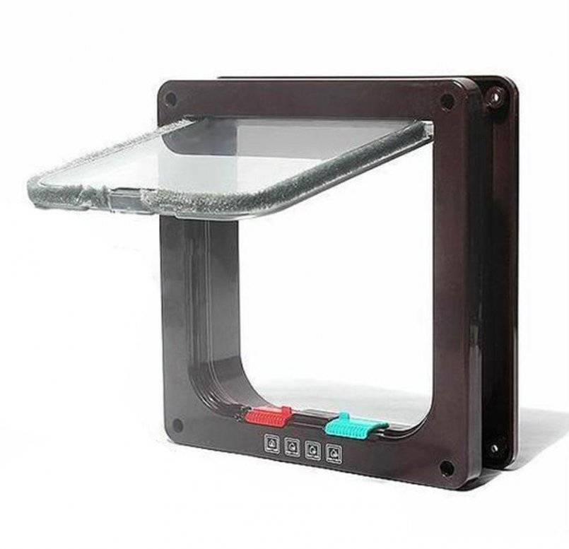 Из ощутимых недостатков — закрываясь, створка ударяется по раме, отчего слышен звонкий стук. Откидное окошко для кошек на сегодняшний день считается уже устаревшим экземпляром.