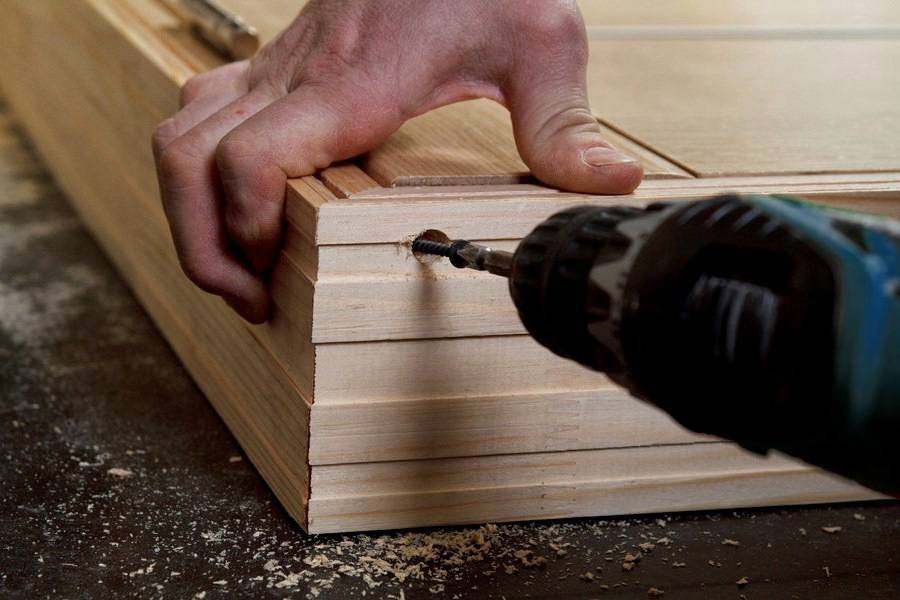 Сборка выполняется в горизонтальном положении. Запиленные части соединяются между собой с помощью гвоздей либо болтов. Забивать их нужно с обеих сторон прилегания планок. После предварительной сборки изделие переносится непосредственно в проем.