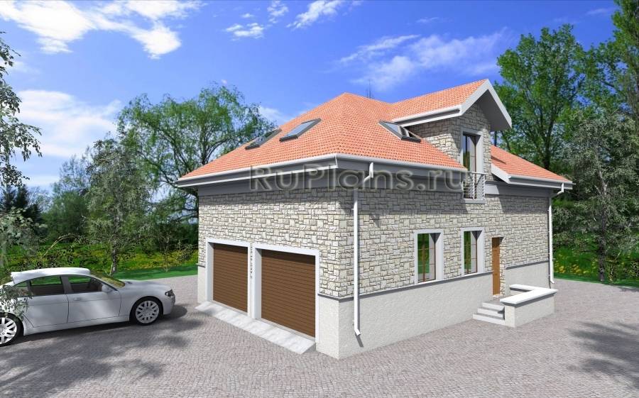 Впрочем, так ли это важно, если проект предлагает возвести продуманное до мелочей здание, которое покоряет функциональностью и эстетичностью. Облицовка клинкерной плиткой вместе с металлочерепицей смотрится стильно. Гараж подходит для достаточно крупных участков, так как его размеры – 12,3*8 м