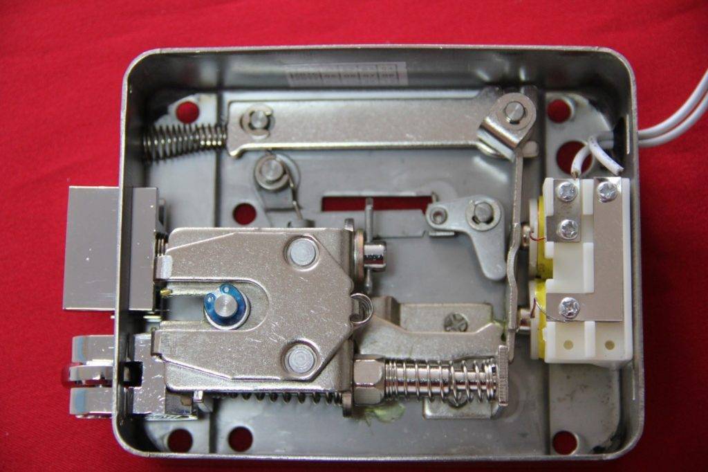 Эклектический сигнал от электронного блока подается на блок управления, где формируется напряжение для срабатывания электромагнитной катушки, которая втягивает засов (ригель). Возврат запорной планки в исходное состояние осуществляется самопроизвольно, при отсутствии напряжения, за счет возвратной пружины.
