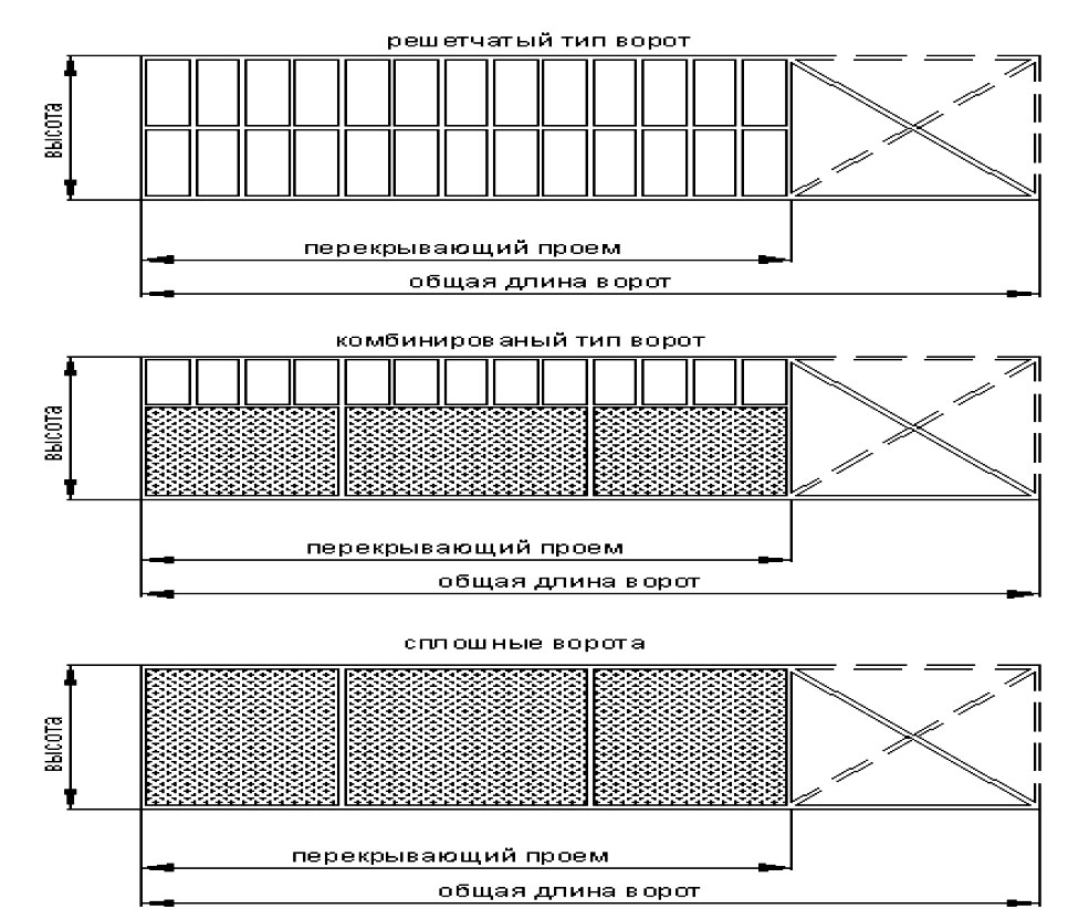 Решетчатые, глухие и комбинированные полотна откатных ворот.