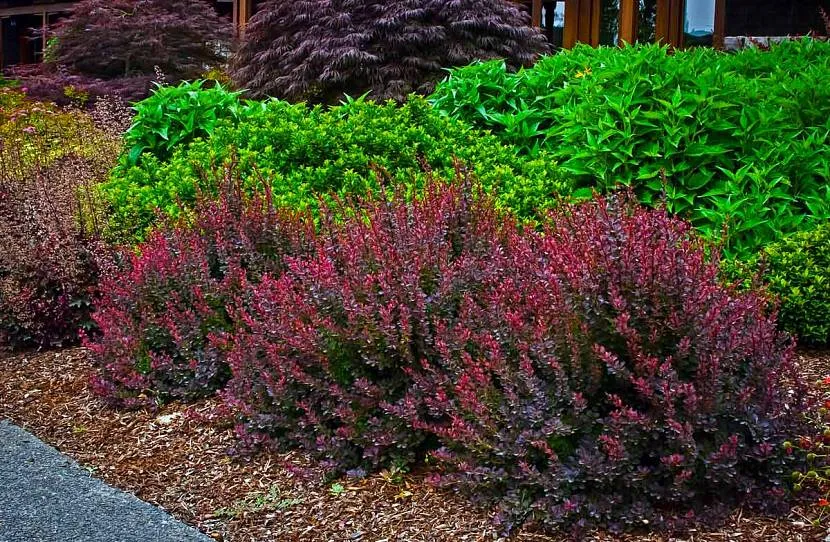 Нужно укрывать на зиму барбарис следующих сортов: Тунберга, Арлекин, Мария, Оранж Рокет, Роз Глоу, Багатель.