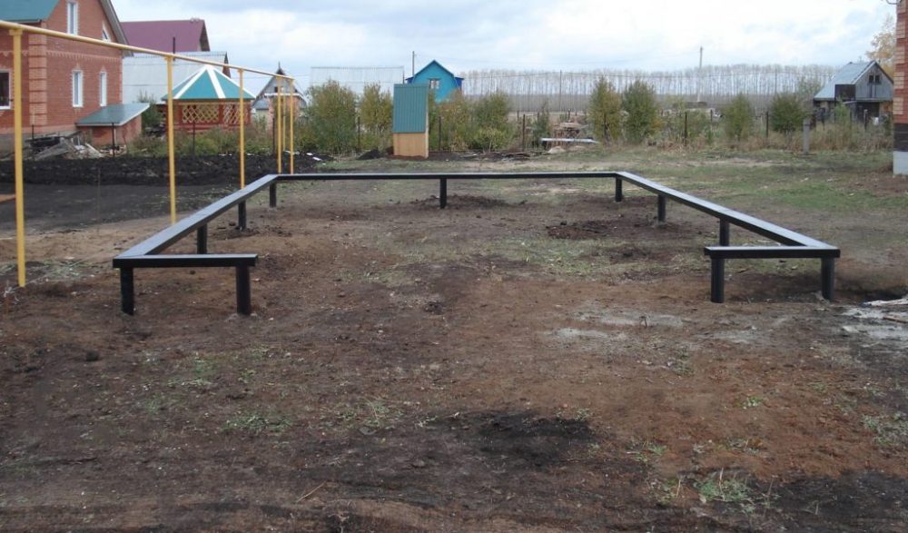 - Сверху слоя кирпича или бетона устанавливается металлический каркас из уголков с шириной стенки 6 см. Он должен быть залит бетоном.