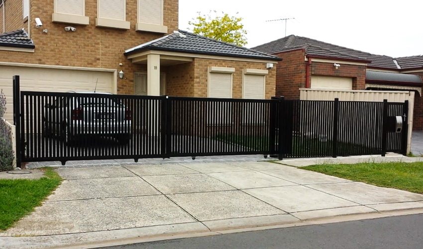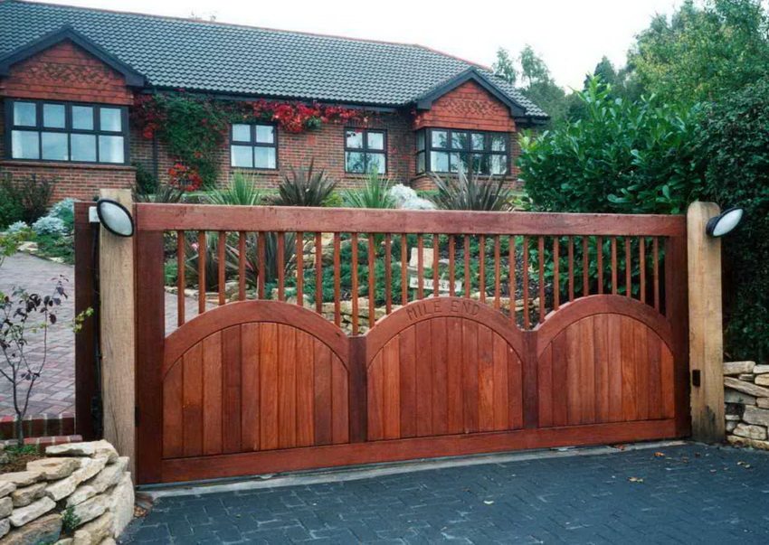 Откатные ворота могут быть сделаны из различных материалов — дерева, металла, профнастила