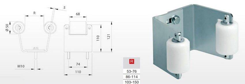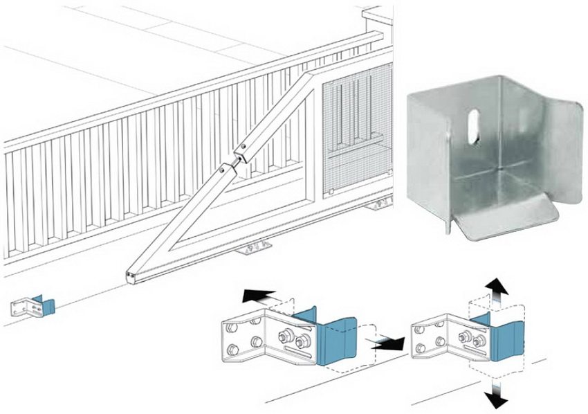 Чертежи откатных ворот своими руками также подразумевают установку верхнего фиксатора с роликами. При этом ролики должны захватывать верх полотна, а кронштейн должен быть направлен отверстиями в сторону опорного столба.