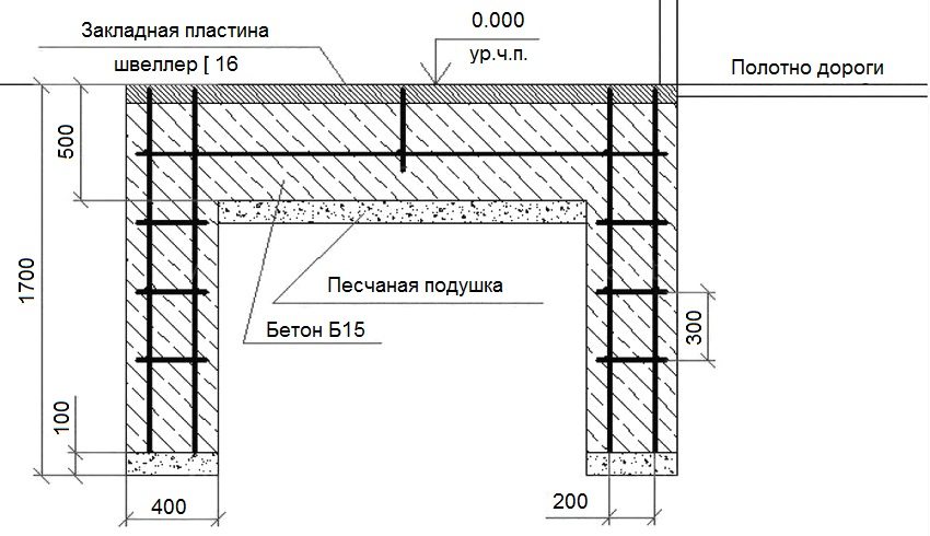 Закладная представляет из себя капитально забетонированный 16-й швеллер. Высота швеллера — это ноль будущего въезда.