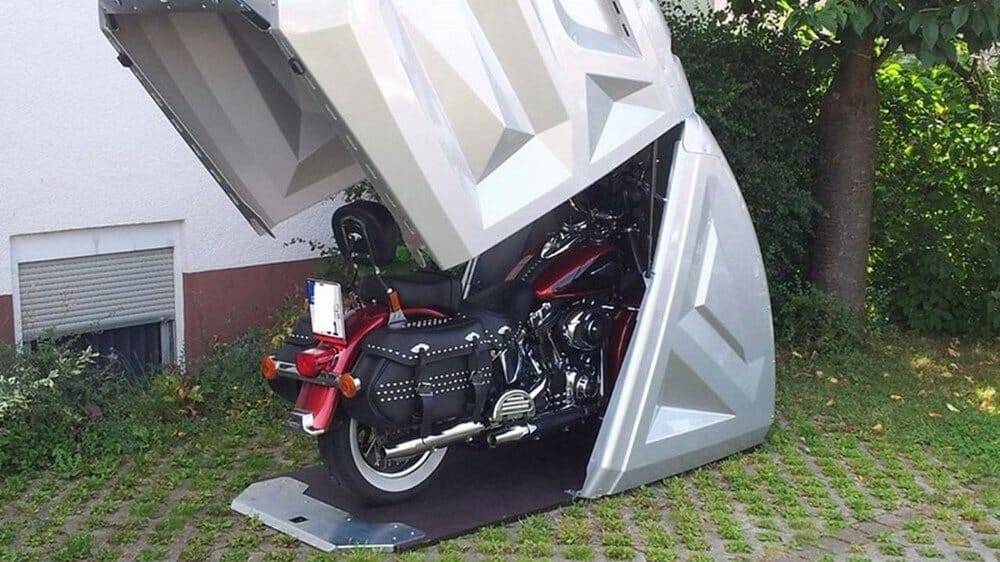 Мотоциклетные гаражи не намного больше самого мотоцикла и не имеют никакой дополнительной функции. Тем не менее, они имеют легкий вес, мобильность и не требуют фундамента, поэтому вы можете легко переставить или сложить их.