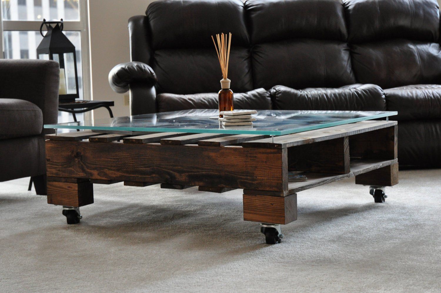 Второй по популярности вариант использования поддона — журнальный столик. В меру большой, с отделением внизу для разных мелочей. Можно покрасить или оставить дерево натуральным. Прикрепить колесики для мобильности или поставить паллеты друг на друга.