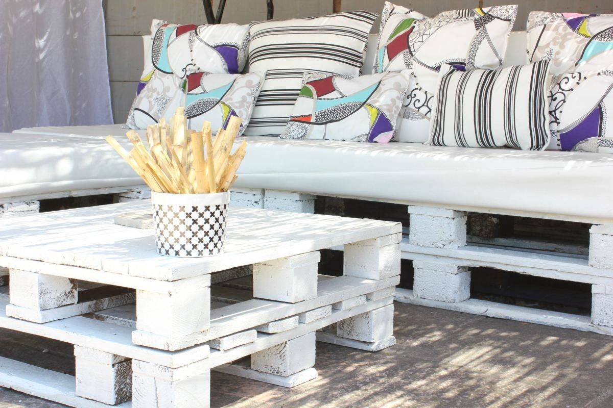 В первую очередь, это, конечно же, диван. Угловой, большой и высокий. Две или даже три паллеты ставим друг на друга, фиксируем между собой, кладем сверху матрас и подушки для уюта — комфортное место для многочисленных друзей готово!