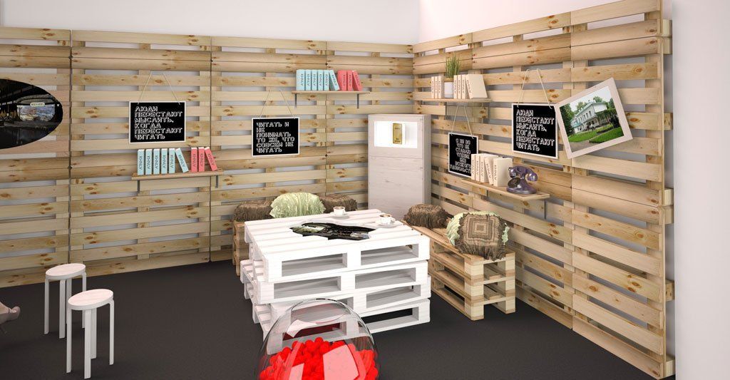 Здесь можно посидеть с друзьями за чашечкой ароматного кофе. Большой и дружной компанией отметить какое-либо событие. Или посвятить время себе любимому за чтением интересной книги. Для всего этого можно придумать массу вариантов оформления. И везде задействовать паллеты.