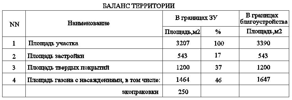 При проектировании экологичных покрытий автостоянок следует площадь этих автостоянок включать в общую площадь газонов. При этом баланс территории участка будет выглядеть следующим образом.