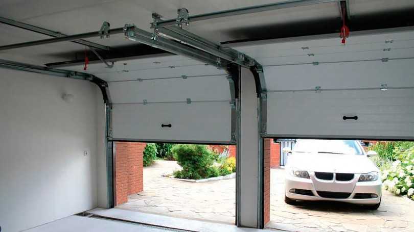 Этот вид появился не так давно. Конструкция представляет собой полотно, которое состоит из секций. При открывании такие ворота постепенно заезжают под потолок, преломляясь при этом. В основе подобных ворот лежит направляющие с цепной передачей и пружинный механизм. Главное достоинство подъемно-секционной конструкции – экономия пространства.
