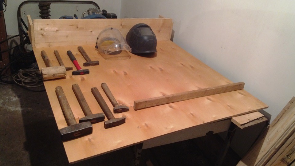 Шаг 1. Для начала нужно выбрать размеры щита. Чаще всего такая полка фиксируется перед верстаком, за которым человек занимается ремонтными работами. Желательно, чтобы щит по ширине был ненамного больше габаритов верстака.