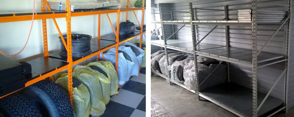 Как уже упоминалось ранее в статье, для правильного сбережения шин отлично подходят полки и стеллажи. Купить такие конструкции можно без труда. Но если финансы не позволяют, то возможно соорудить самостоятельно. Понадобится только приобрести материалы и комплектующие. Все необходимые инструменты наверняка найдутся в каждом гараже.