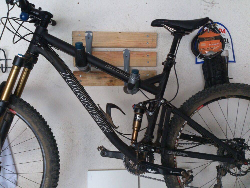 Когда место для хранения найдено, нужно подумать о том, как подвесить велосипед удобно и надежно, чтобы не повреждались его детали, не слишком уменьшалось пространство комнаты, а его хранение было безопасно для всех членов семьи.Одним из распространенных способов, как хранить велосипед на стене, является купленная в веломагазине или сделанная самостоятельно полка-вешалка из дерева. На такие полки велосипеды подвешиваются за раму, причем на одну полку их можно повесить несколько штук.