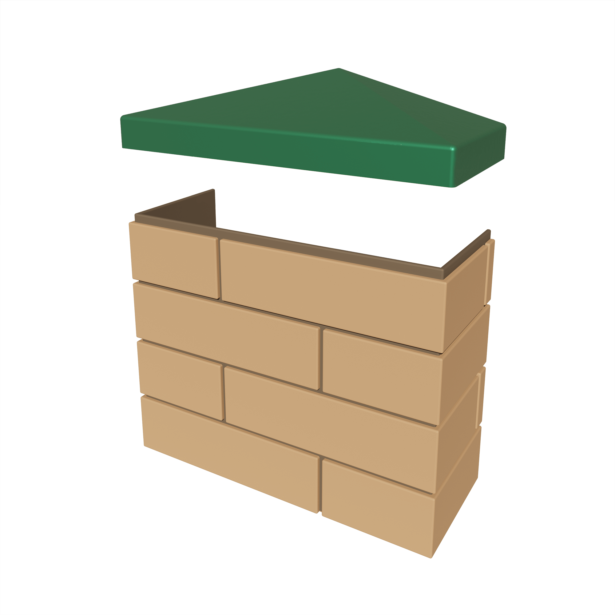 - На первом панельном блоке фиксируют козырек, который служит декоративным украшением и предотвращает попадание влаги внутрь искусственной кладки.