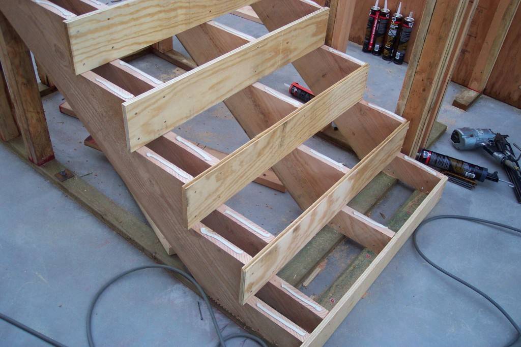 В первую очередь следует установить подступенки – вертикальную часть ступенек. Для этого можно использовать саморезы либо специальный клей.
