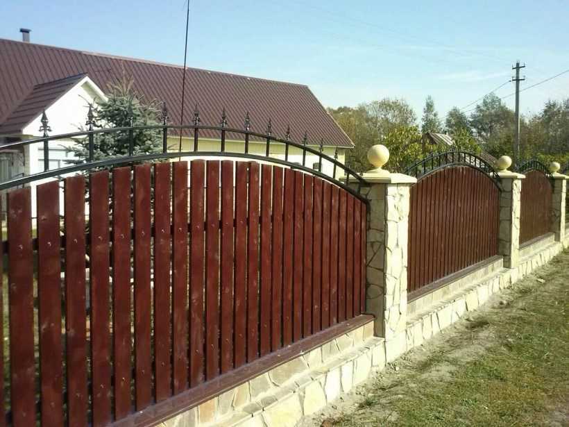 В зависимости от выбранного материала, получится сделать низкий или высокий забор. Здесь также многое зависит от цели забора и экстерьера участка. Порочно и долго будет стоять такой забор с основанием из бетона, камня или кирпича. Обустроить такую конструкцию можно как в городе, так и за его пределами.