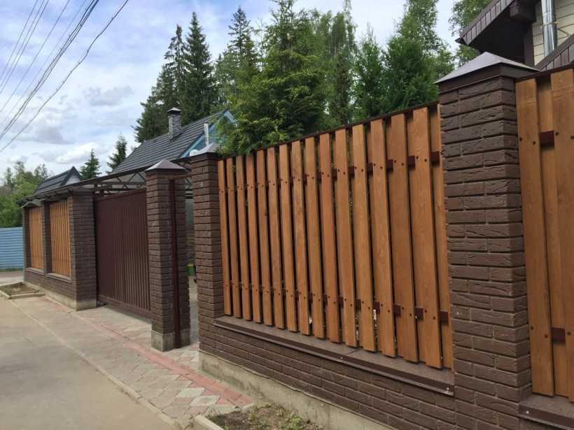 Часть заборов можно полностью изготовить из одного материала, но часто их комбинируют. Например, профильную металлическую трубу также используют при строительстве деревянных и пластиковых заборов, а у кирпичного забора она служит в качестве армирующего элемента столба. Поэтому ниже приведен список материалов, которые идут на изготовление пролетов: