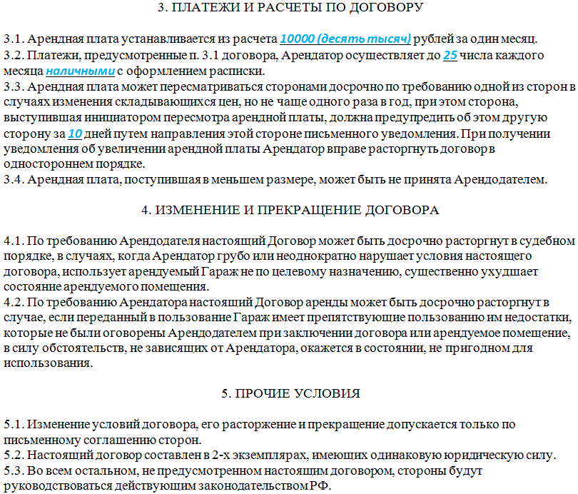 Обратите внимание на важный пункт. Если у вас будут арендовать гараж длительное время, сделайте пункт об изменениях ежемесячной платы раз в год, при необходимости